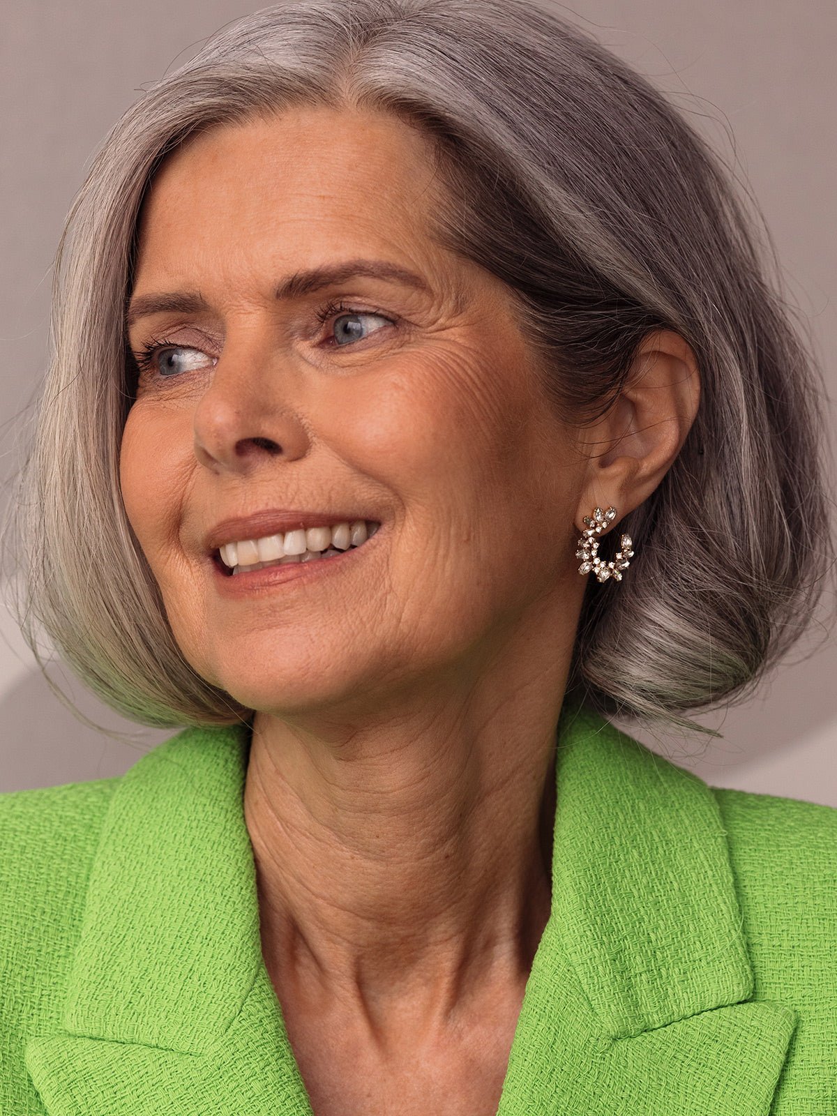 A stunning pair of stud earrings featuring an effortless silhouette with a soft. romantic curve. Covered in twinkling crystals. its unique and effortless design is unforgettable.