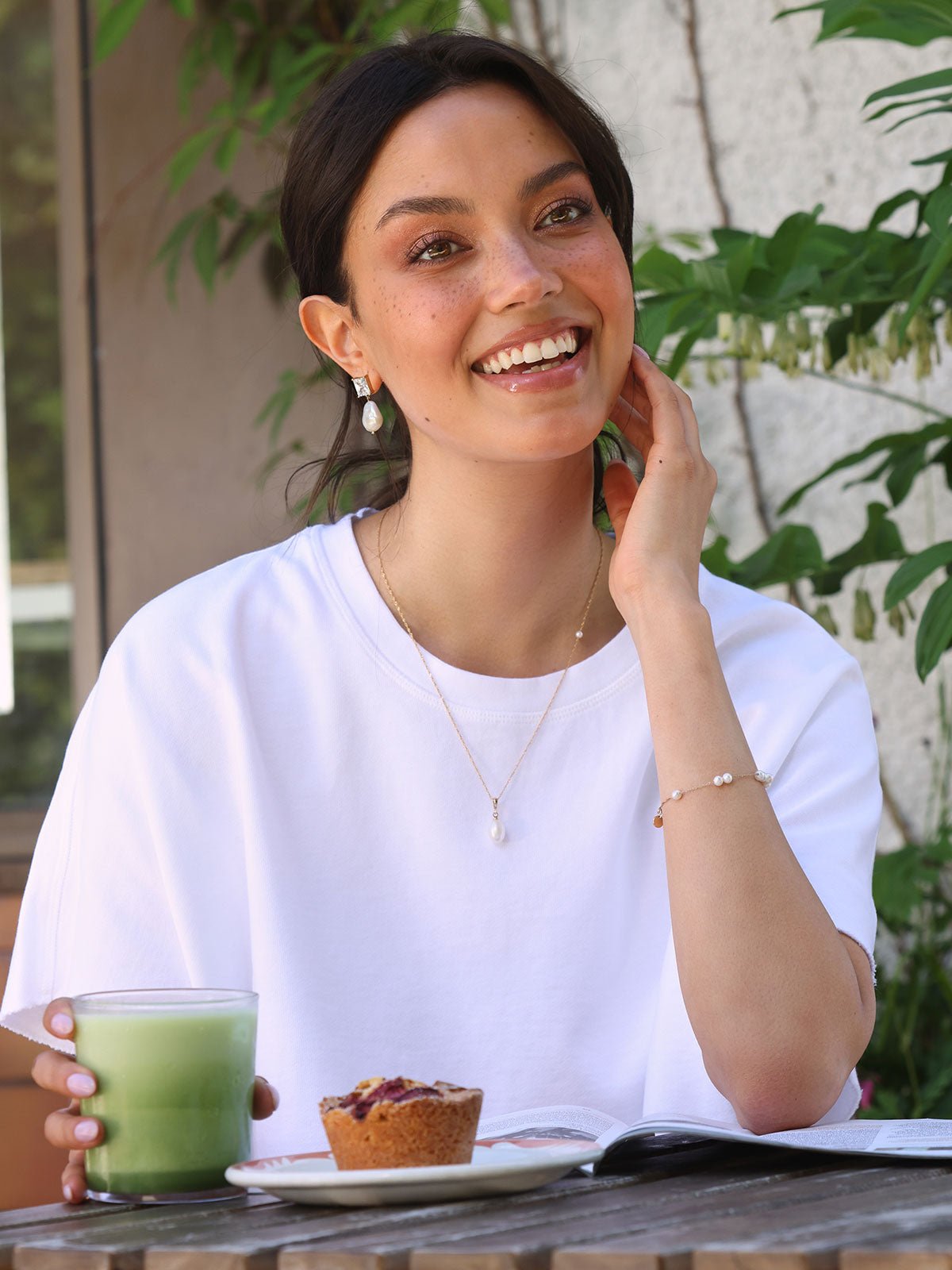 Take a modern spin on a classic style. These radiant gems and baroque pearls confidently take their space. making them subtle. compliment-worthy drops.